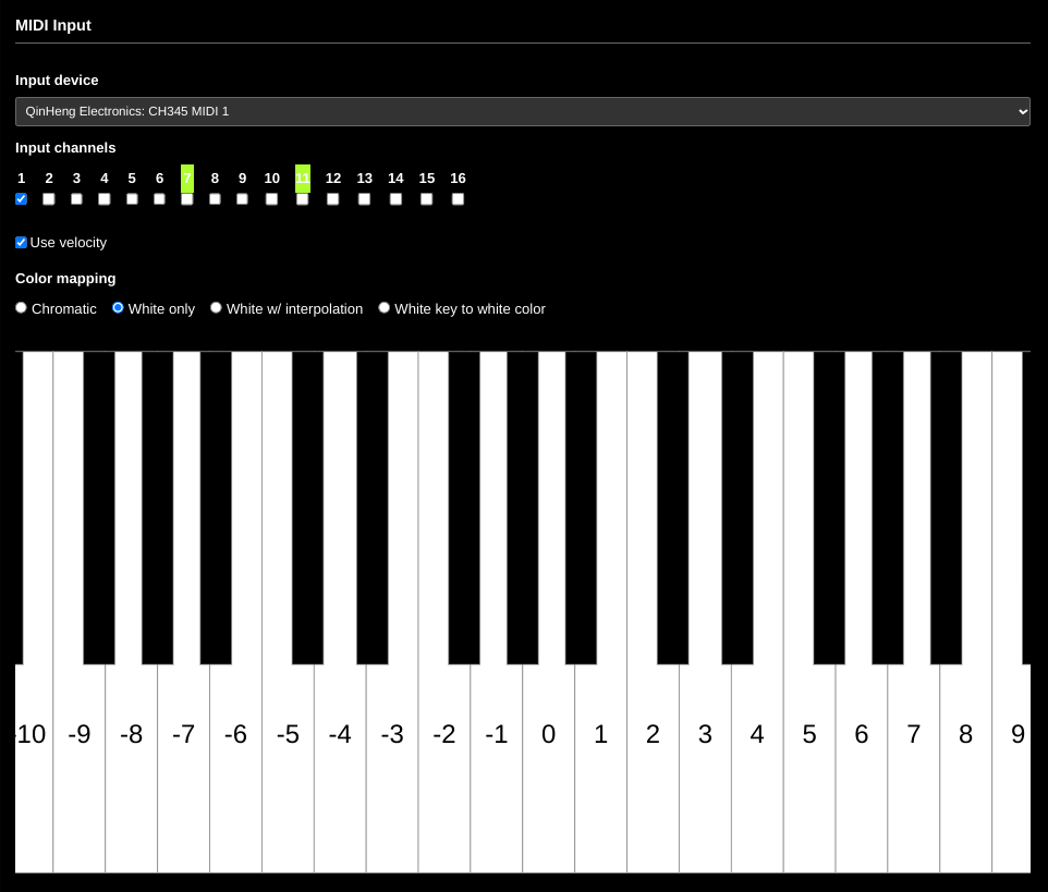 Finally, you must choose your mapping. For 7EDO, White only is the best choice, since that means it will ignore all black keys, which is essentially what that tuning is.